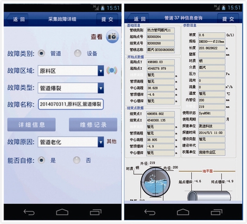 ■ 手持端PDA功能主要是對(duì)管道的日常維修進(jìn)行管控,為管道的排查上報(bào)故障等工作提供方便。
